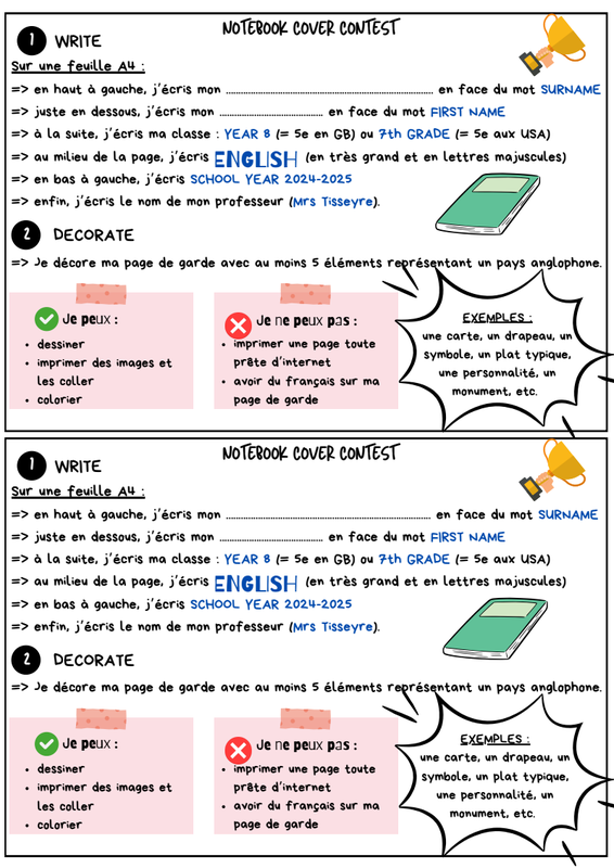 Consignes Page De Garde